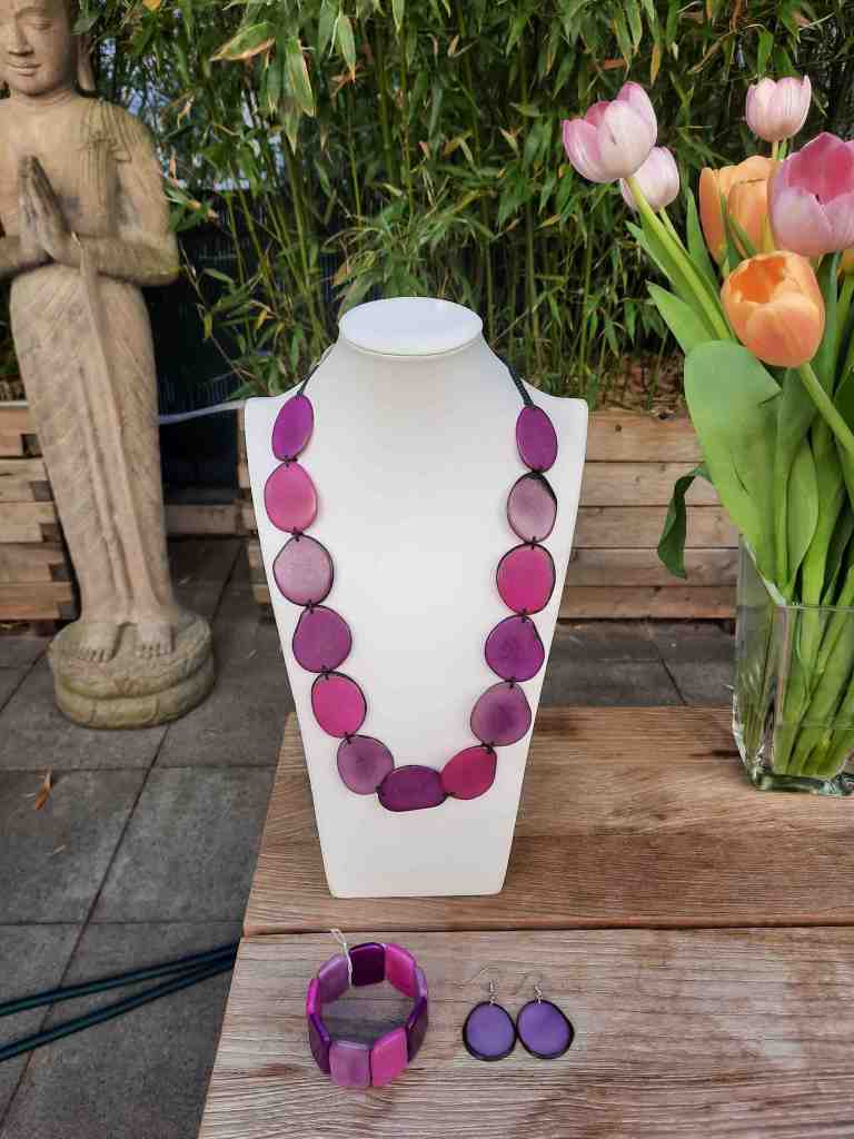 ARMB35 Kette (La Tagua) €45; Armband Ecapu €19,90; Ohrringe €16