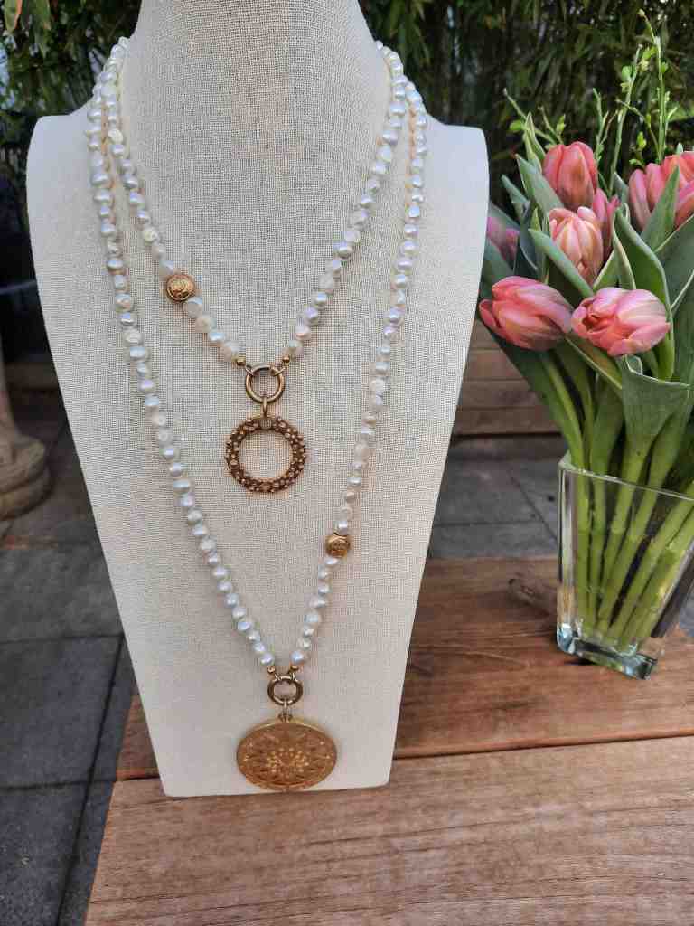 ST21 Kette div.Halbedelsteine €39,90; Anhänger Lilie €29.90