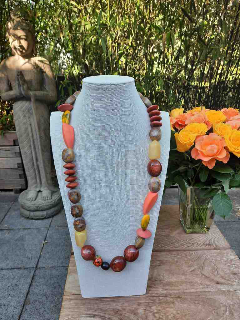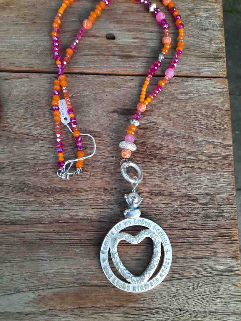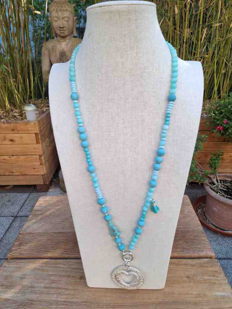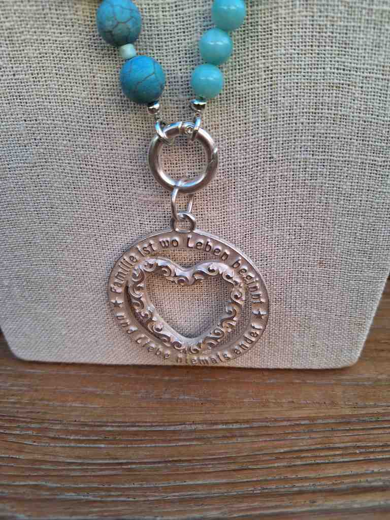 ST40 Kette Halbedelsteine und Akazienholz €44,90 ; Anhänger Herz €16,90