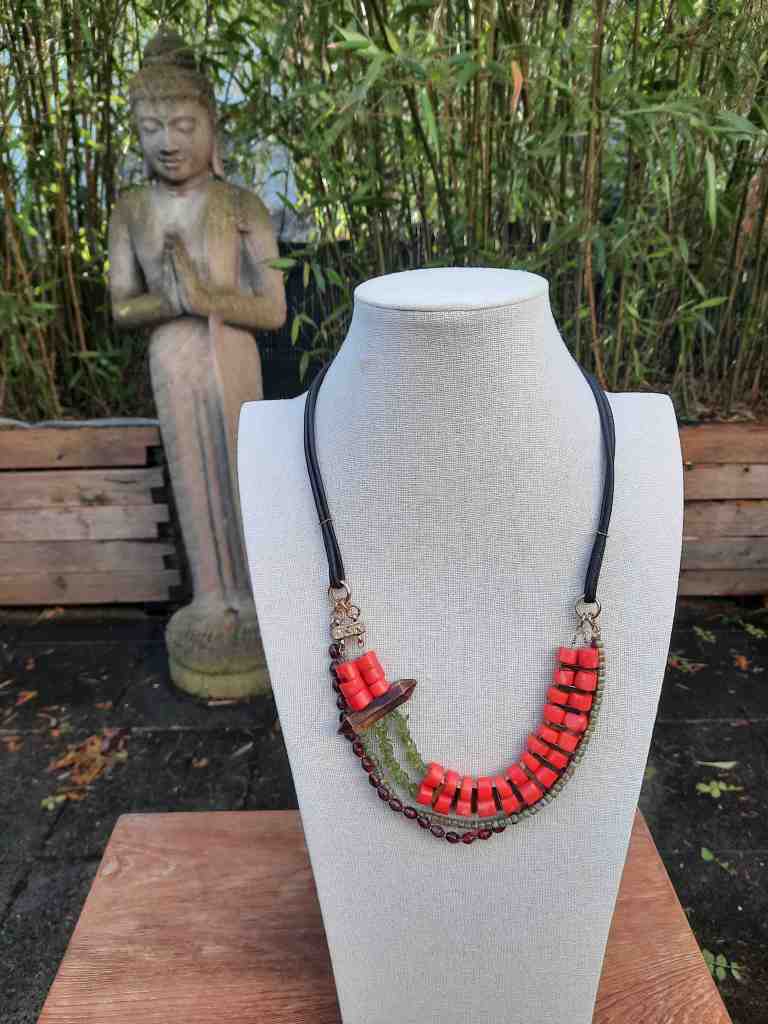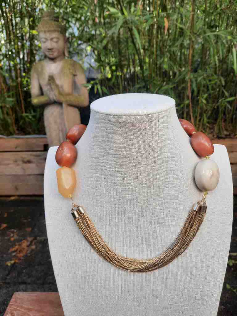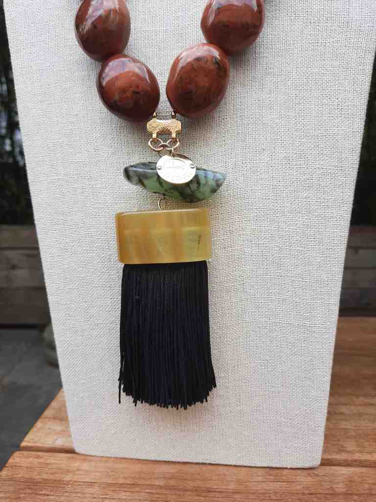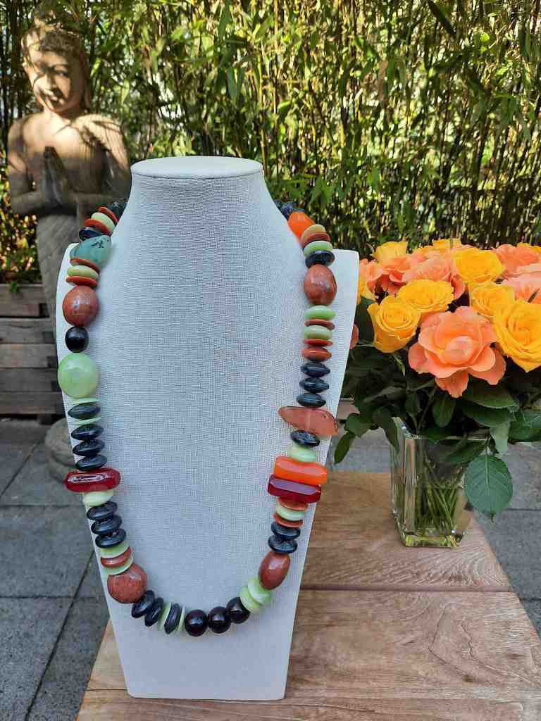 ST40 Kette Halbedelsteine und Akazienholz €44,90 ; Anhänger Herz €16,90